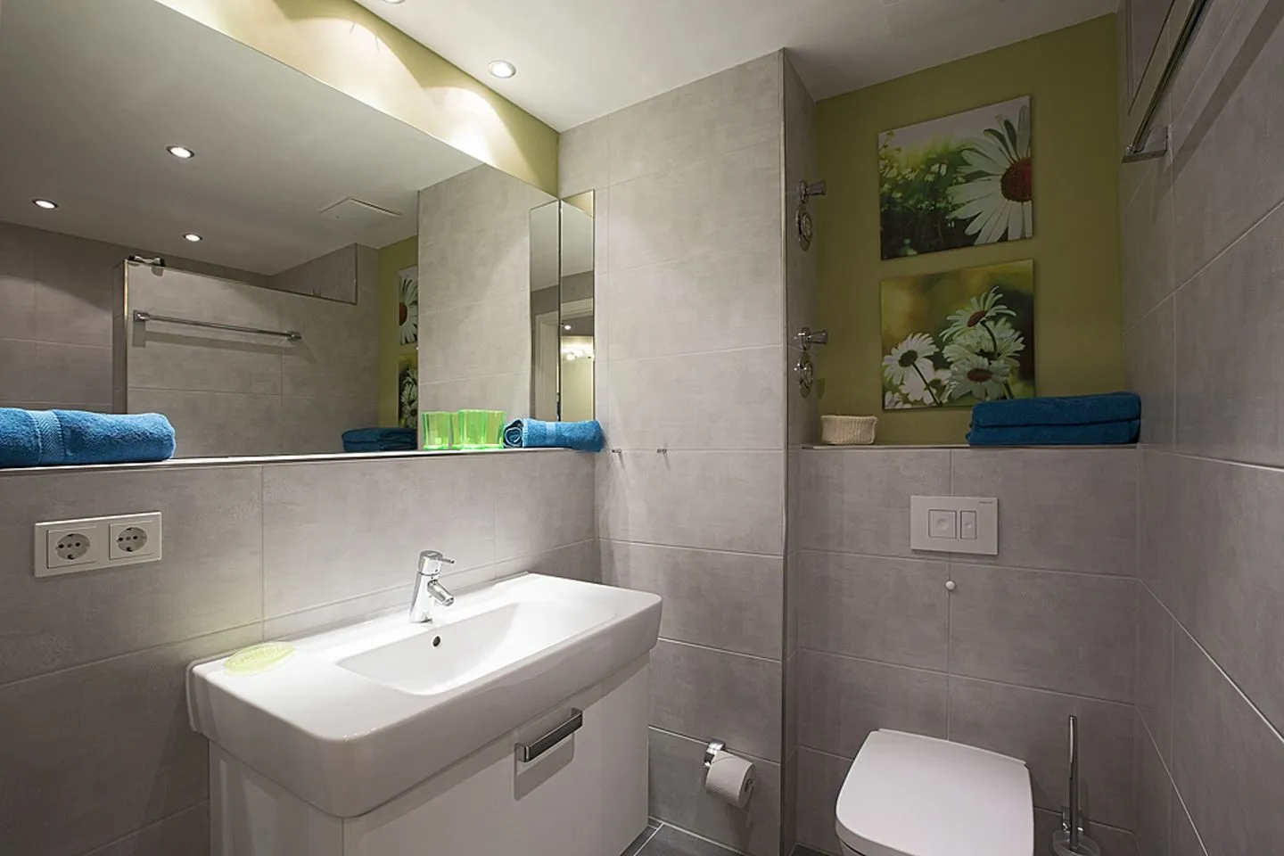 Das Schlafzimmer besticht durch einen geräumigen Schrank, ein komfortables Doppelbett und einen zusätzlichen LCD-TV für Ihre Unterhaltung. Im Badezimmer erwartet Sie eine begehbare, offene Dusche, die modernen Komfort und Funktionalität vereint.
