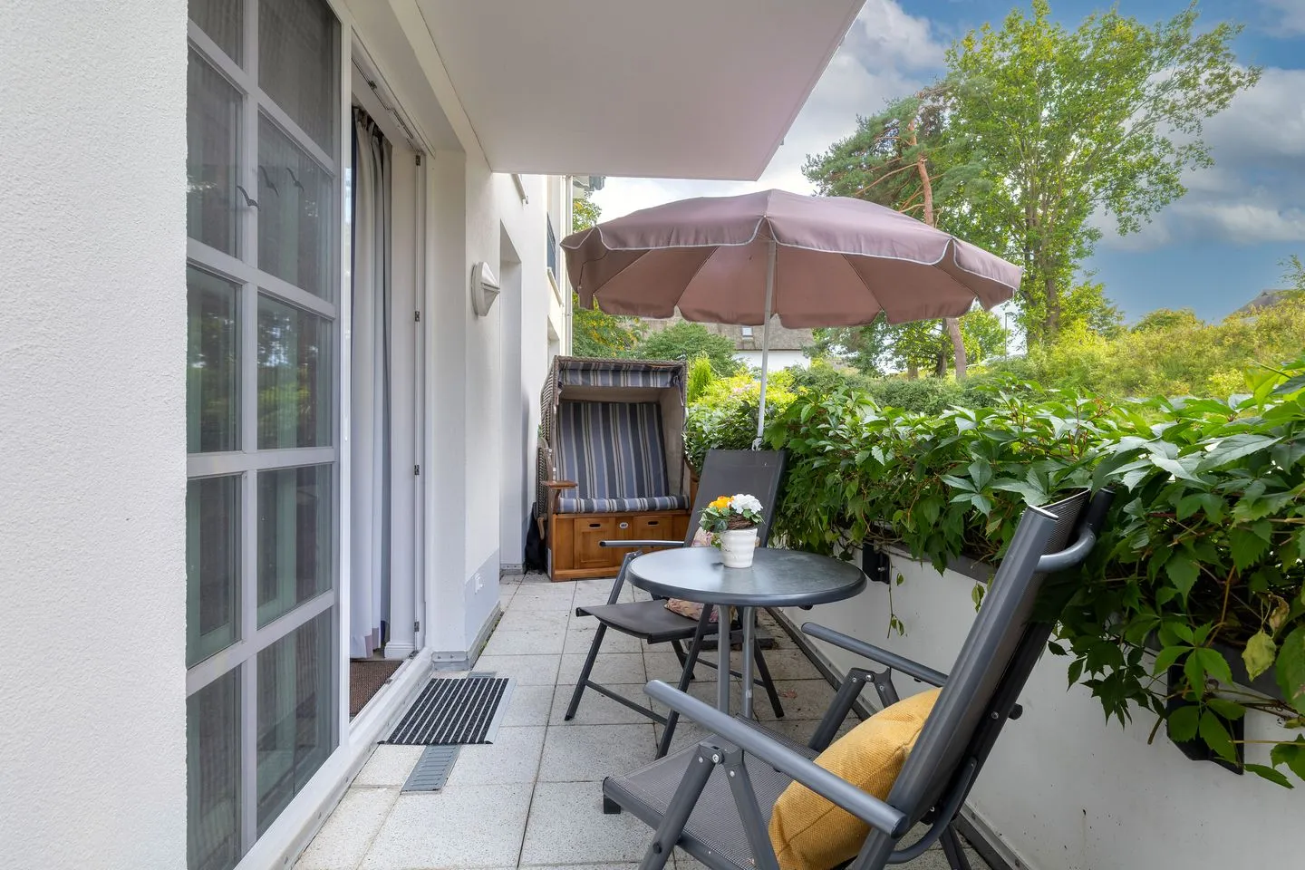 Genießen Sie die frische Luft und die Stille des Naturschutzgebiets auf unserer großzügigen abgeschlossenen Terrasse. Ein perfekter Ort, um sich zu entspannen, die Seele baumeln zu lassen und die Natur in vollen Zügen zu erleben.
