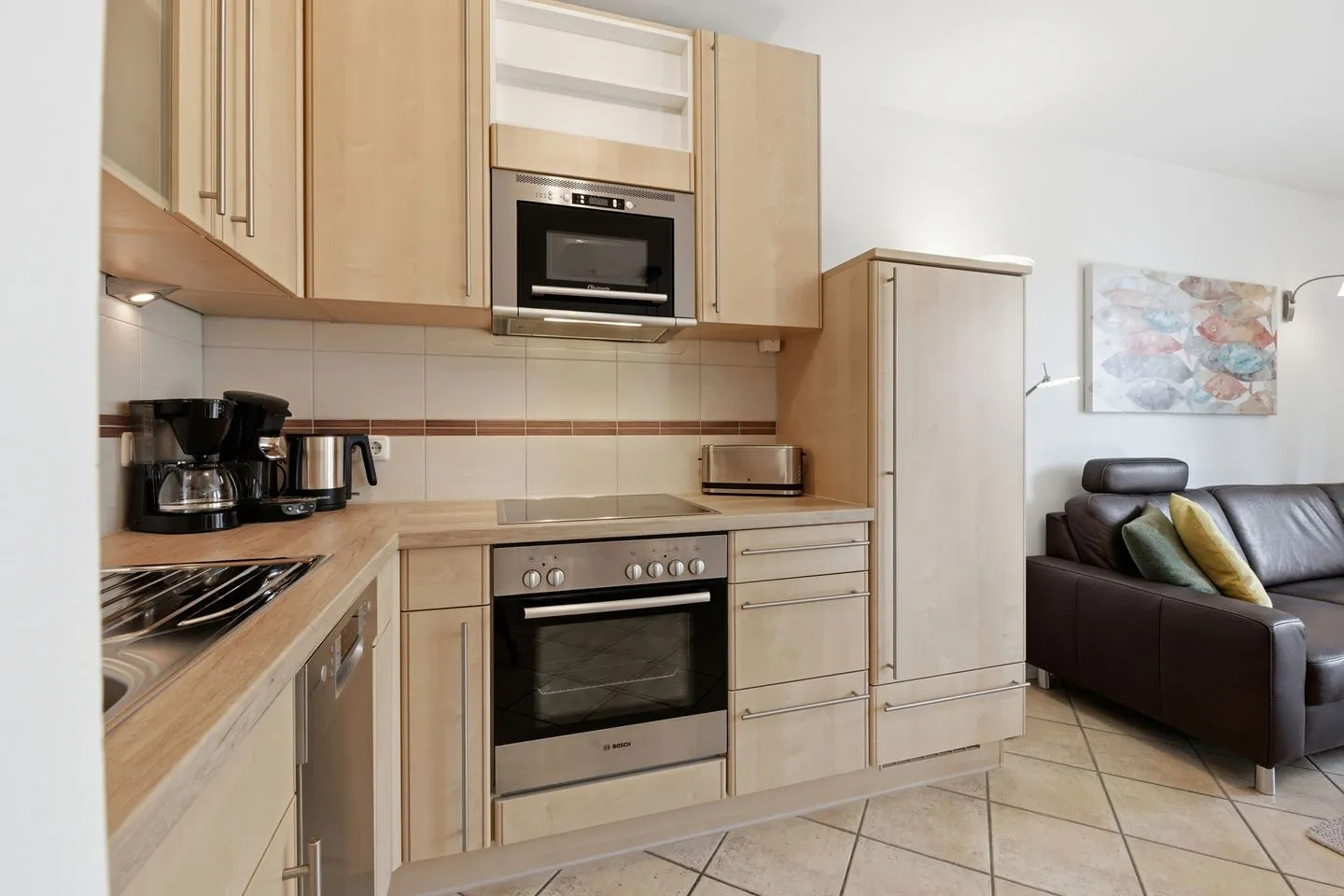 Herzlich willkommen in der großzügigen, mit 5 DTV-Sternen zertifizierten 3-Zimmer-Wohnung im 2. Obergeschoss der Ostseeresidenz Gorki-Park. Die stilvolle Unterkunft überzeugt mit einem lichtdurchfluteten Wohn- und Essbereich sowie zwei Schlafzimmern, jeweils ausgestattet mit komfortablen Doppelbetten, die ein unvergleichliches Wohlfühlambiente schaffen. Die moderne, hochwertige Einrichtung der Wohnung sorgt für ein erstklassiges Wohngefühl. Die voll ausgestattete Küche erfüllt sämtliche Ansprüche.