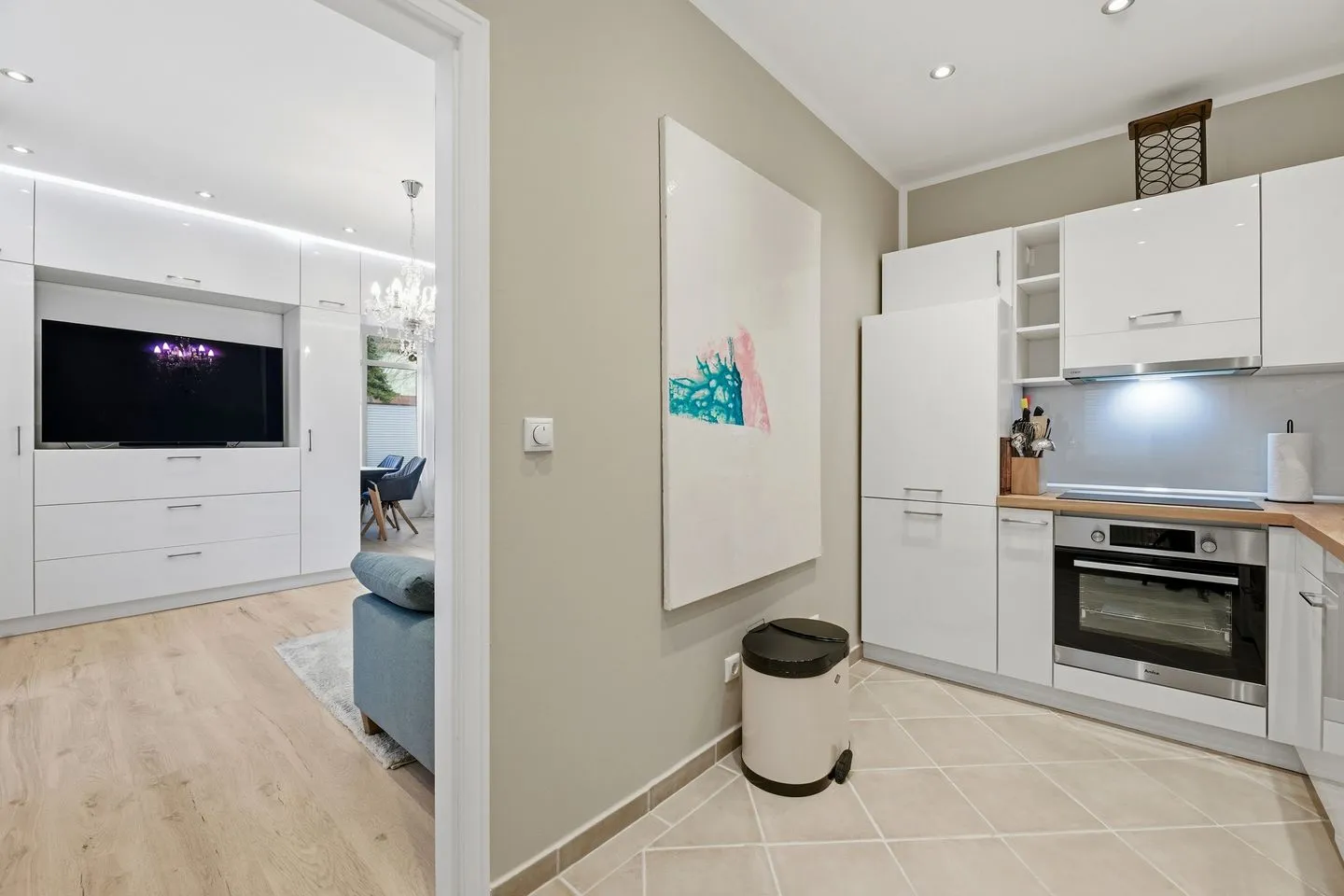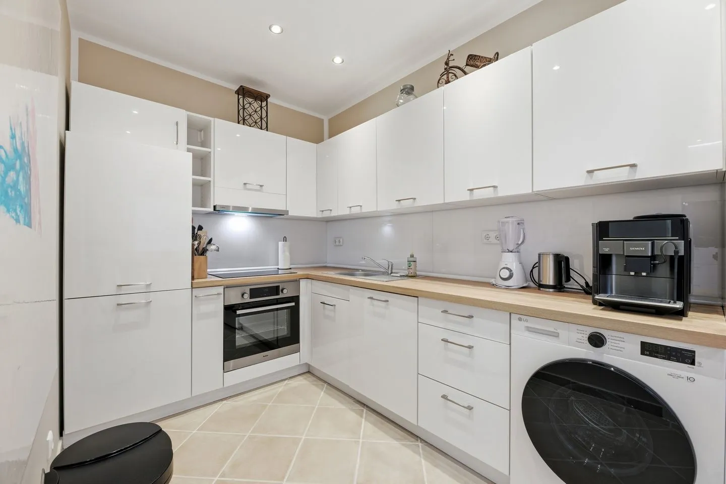 Im Wohnbereich stehen Ihnen WLAN, zwei TVs mit Satellitenanschluss, internationalem Kanalangebot und einer Bildschirmgröße von 44 bis 55 Zoll sowie eine Sofaecke zur Verfügung. Essbereich, Esszimmer, Wohnzimmer und Wintergarten schaffen vielseitige Rückzugs- und Aufenthaltsmöglichkeiten. Die geschlossene Küche ist umfassend ausgestattet mit Ceranherd, Backofen, Mikrowelle, Spülmaschine, Kühlschrank, extra Gefrierschrank, Kaffeemaschine, Toaster, Wasserkocher, Mixer sowie Geschirr, Besteck, Küchenutensilien und Geschirrhandtüchern. Auch Erstausstattung und Reinigungsmittel sind vorhanden.