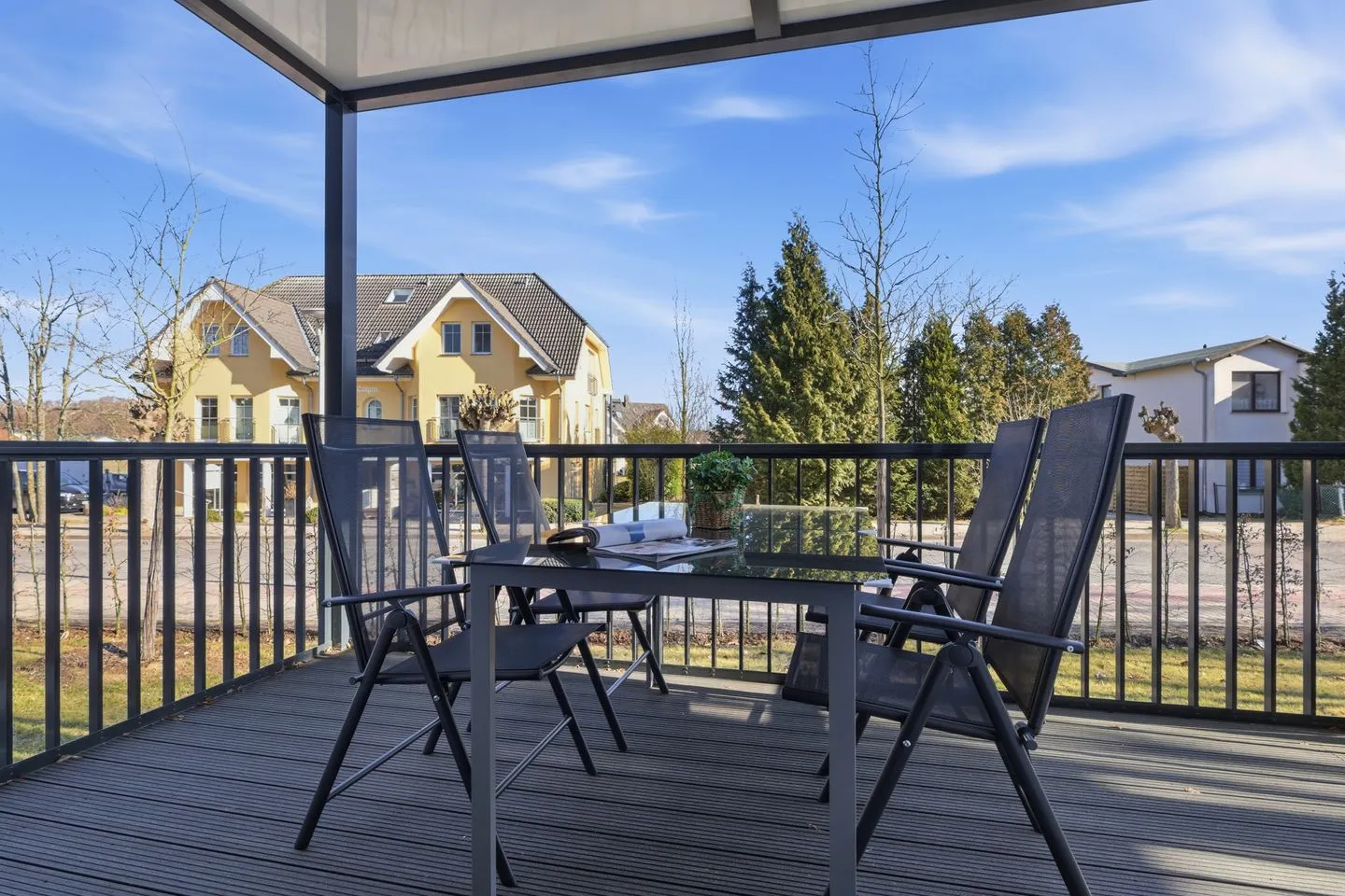 Draußen genießen Sie Ihren Balkon, der zudem überdacht ist – ideal für eine Pause an der frischen Luft. Für Gäste mit Auto ist ein Privatparkplatz vorhanden (1 Stellplatz).