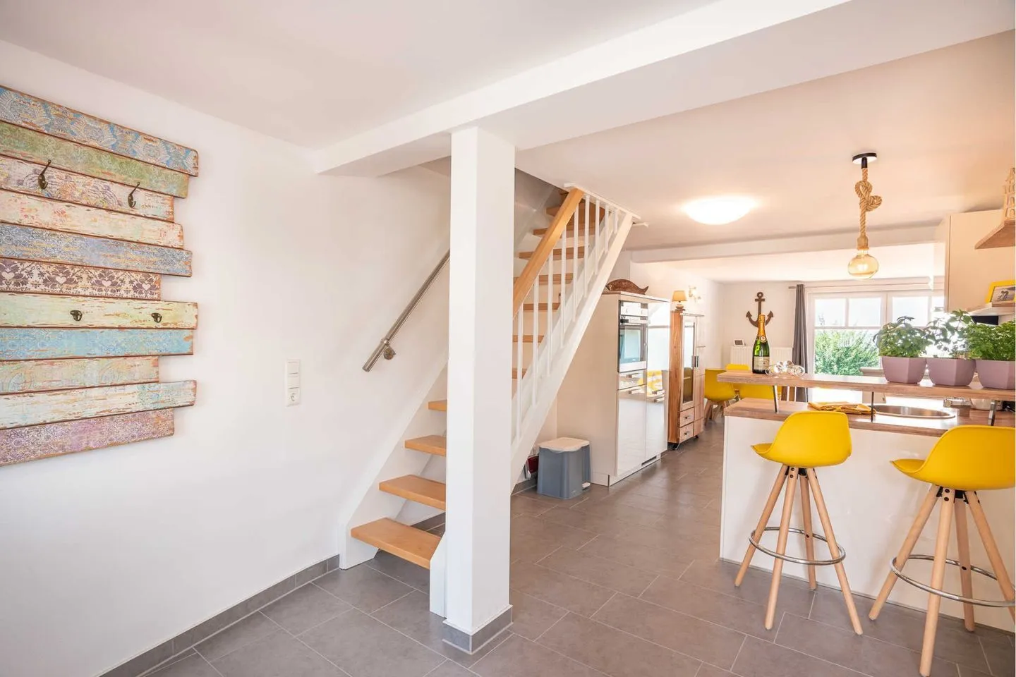 Im Bad erwartet Sie eine Badewanne sowie eine bodengleiche Dusche. Zusätzlich sind Haartrockner und Handtücher vorhanden, sodass Sie sich um wichtige Basics nicht kümmern müssen. Die Küche ist mit Backofen, Kühlschrank, Gefrierfach/-schrank (Fach im Kühlschrank), Spülmaschine, Herd (4-Platten), Toaster, Wasserkocher und Kaffeemaschine ausgestattet. Praktisch ist außerdem die Waschmaschine im Haus, damit auch längere Aufenthalte unkompliziert bleiben. Für angenehme Temperaturen sorgt eine Heizung mit Gas sowie Fußbodenheizung.