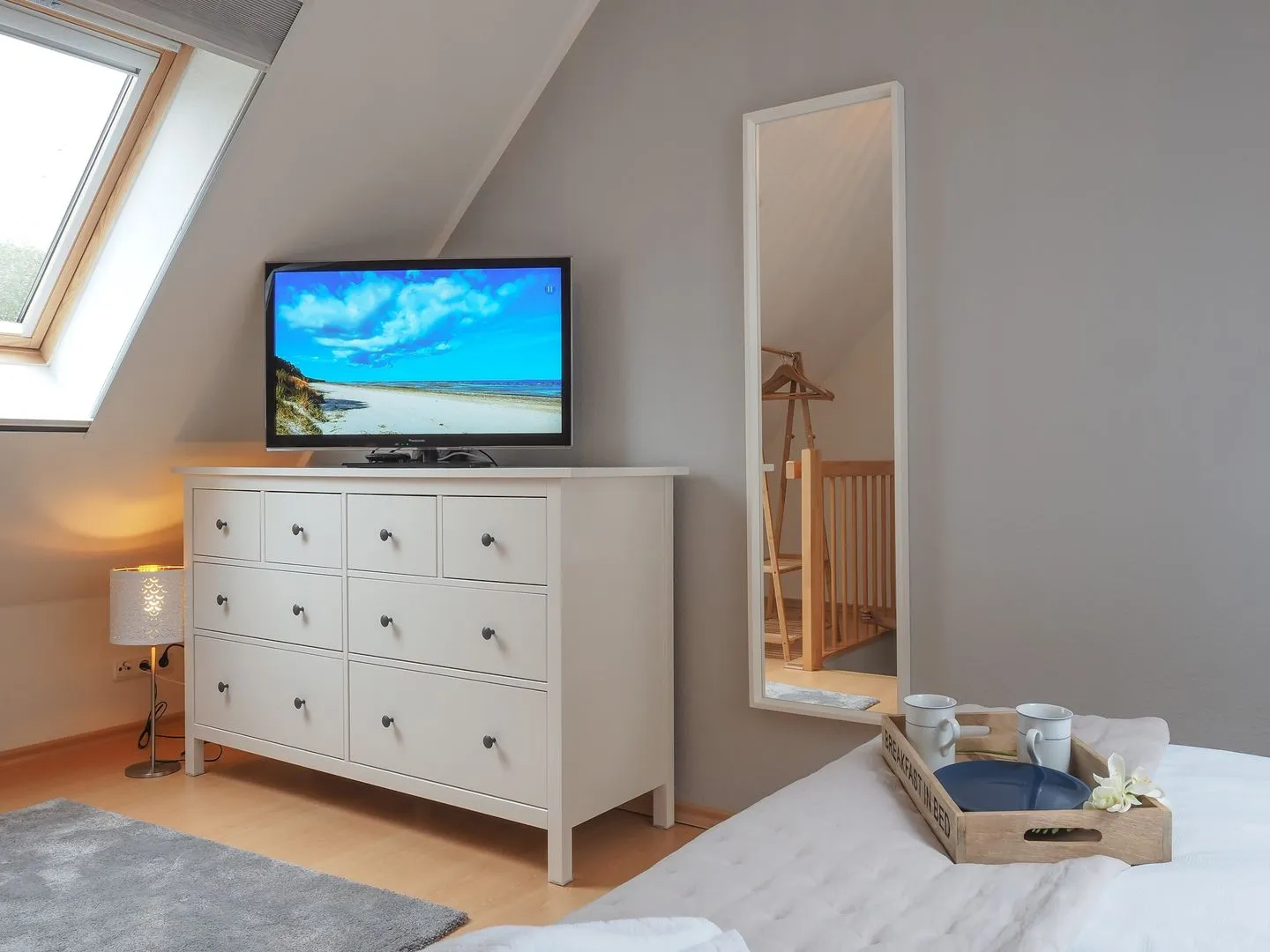 Ein besonderes Highlight dieses Appartements ist das zweite Schlafzimmer im charmanten Spitzbogen des Hauses, welches eine gemütliche Atmosphäre zum Entspannen und Träumen bietet.