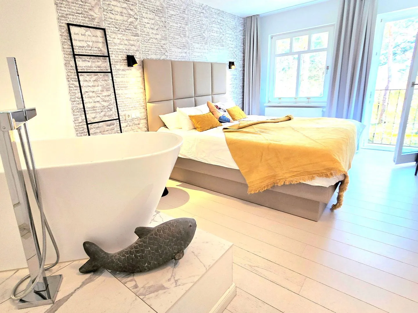 Die Lieblingssuite ist ein ca. 57 qm großes, bestens ausgestattetes Apartment direkt an der Promenade am Strand im Seebad Ahlbeck. Es ist ausgerichtet für einen sehr komfortablen Pärchenurlaub mit freistehender Badewanne im Schlafzimmer, Weinkühlschrank, Bang & Olufsen- Musikbox, Spülmaschine und, und und....
