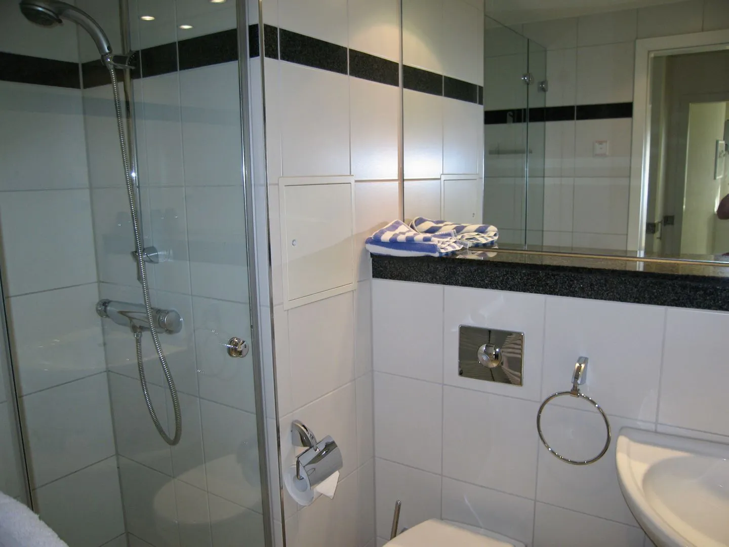 - das erste Badezimmer, das über eine große, bodengleiche Dusche verfügt, ist direkt vom Schlafzimmer aus zugänglich. Ein weiteres Badezimmer mit Dusche bietet zusätzlichen Komfort, besonders wenn die Wohnung von mehr als zwei Personen genutzt wird. Beide Bäder sind hochwertig ausgestattet, mit großzügigen Spiegeln, viel Licht, Handtuchheizkörpern und Haartrocknern