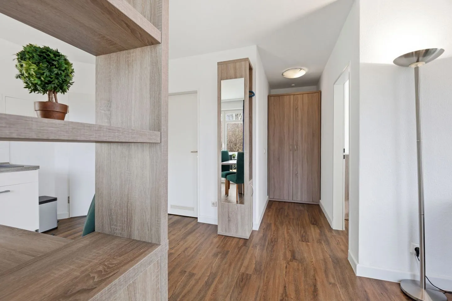 Die Wohnung befindet sich im Erdgeschoss und heißt auch Haustiere herzlich willkommen. Mit Blick zum Buchenpark genießen Sie außerdem die Ruhe in der Ferienwohnung.