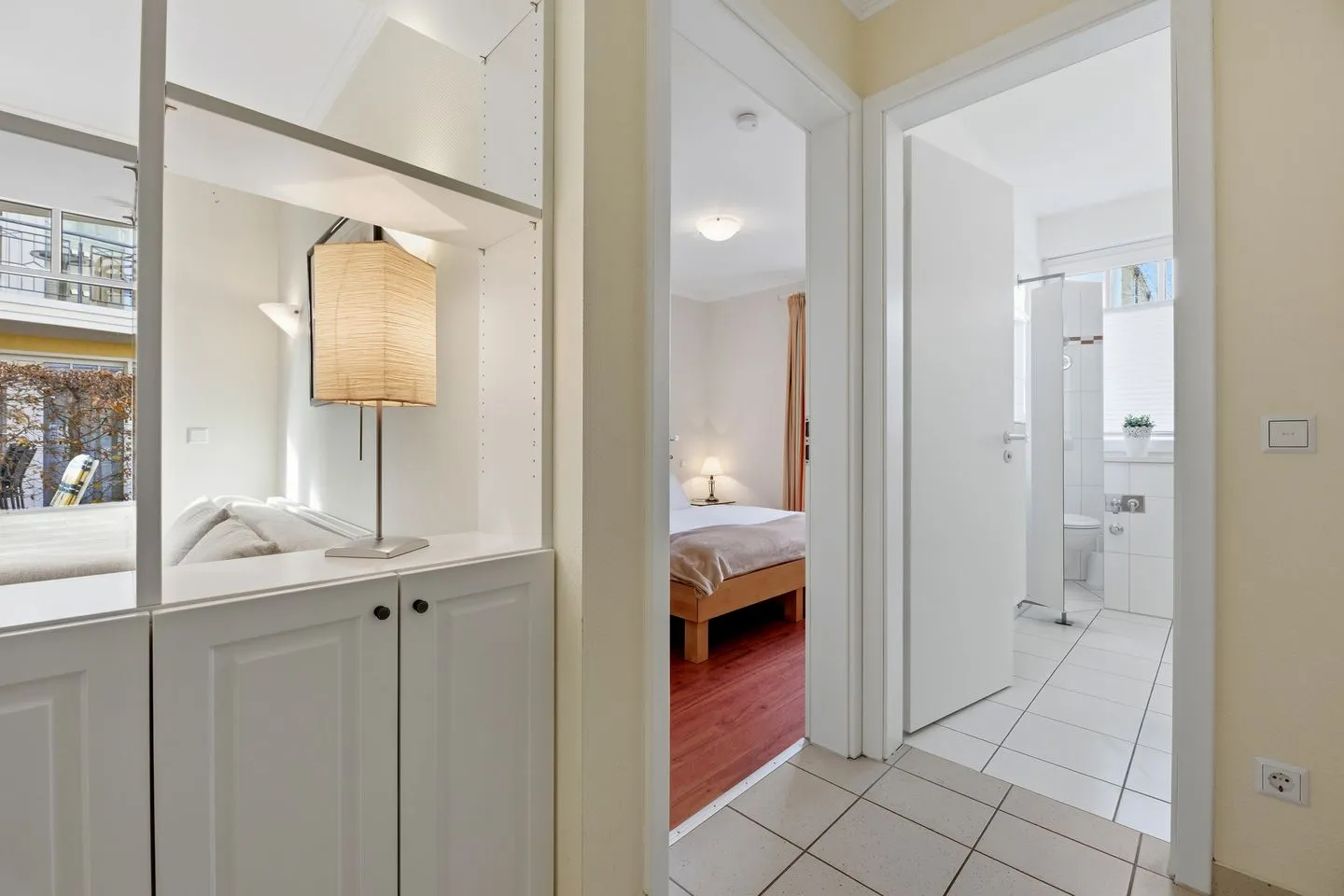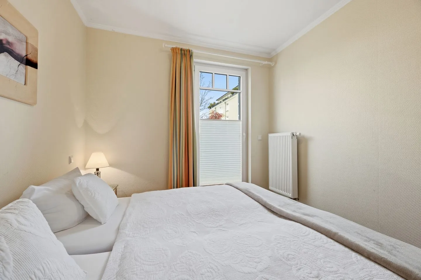 Das separate Schlafzimmer mit komfortablem Doppelbett sowie Schlafsofa im Wohnzimmer macht die Wohnung ideal für vier Personen.