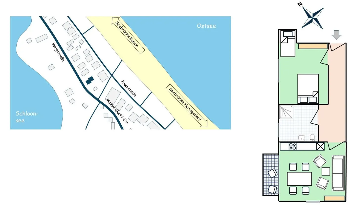 Die Villa Strandoase befindet sich in absoluter Top-Lage zwischen Maxim-Gorki-Straße und der Strandpromenade des Ostseebads Heringsdorf. Über den privaten Zugang gelangen Sie in wenigen Minuten zum breiten, weißsandigen Ostseestrand.