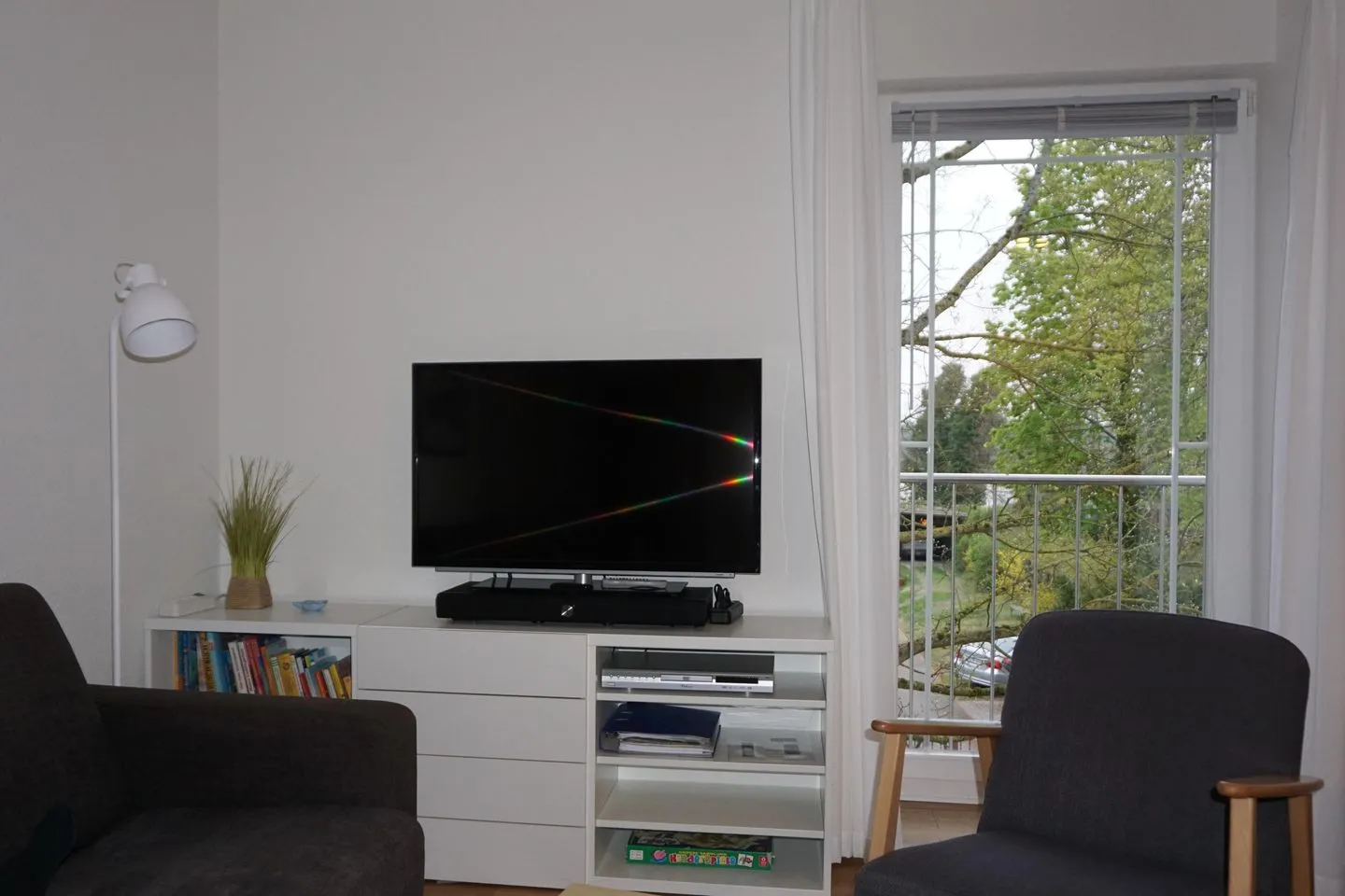 Sie erwartet eine liebevoll eingerichtete Wohnung im ersten Obergeschoss der Villa Strandoase. Das helle, offene Wohnzimmer führt direkt auf einen großzügigen Balkon, der zum Verweilen an der frischen Meeresluft einlädt. Die moderne, voll ausgestattete Küchenzeile mit Geschirrspüler ist stilvoll in den Wohnraum integriert und bietet alles, was Sie für einen komfortablen Aufenthalt benötigen. Flachbild-TV (2. Fernseher im Schlafzimmer), Radio, DVD-Player mit DVDs sowie kostenloses WLAN bieten Unterhaltung abends oder an verregneten Ferientagen.