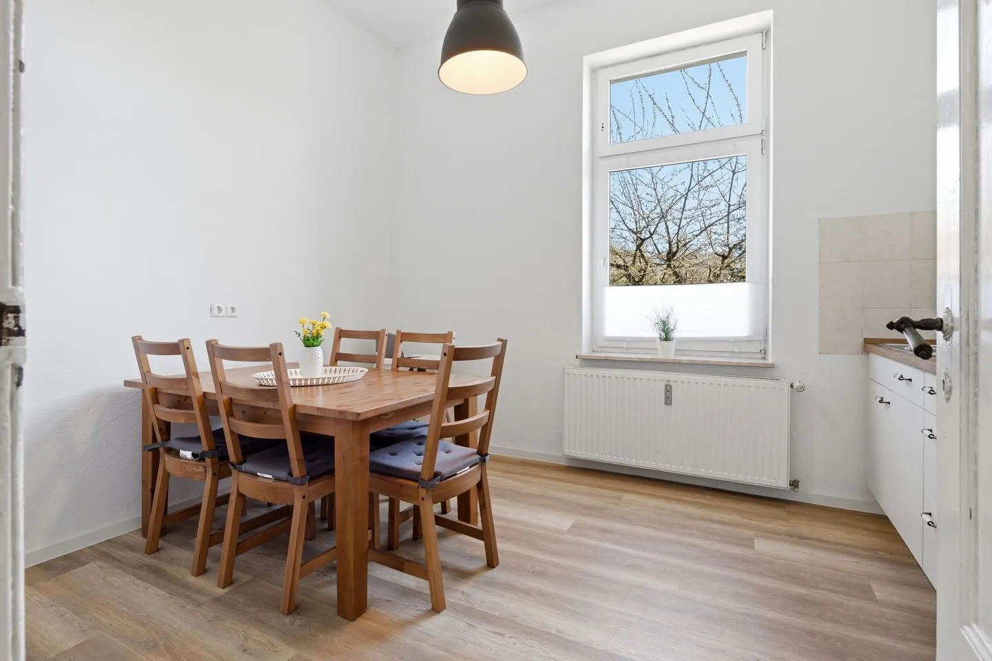 Betreten Sie die Ferienwohnung "Schute" und lassen Sie sich von ihrem großzügigen Charme verzaubern. Auf beeindruckenden 62 m² erwartet Sie ein Raumkonzept, das modernen Komfort und Gemütlichkeit gekonnt vereint. Der Wohnraum lädt mit einer hochwertigen Couchgarnitur inklusive ausziehbarer Schlafcouch für 2 Personen und einer modernen Wohnwand zum Entspannen ein. Ein SAT-TV sorgt für spannende Unterhaltung an verregneten Tagen oder gemütlichen Abenden. Die komplett eingerichtete Küche begeistert mit einem Herd inklusive Backofen, einem großzügigen Kühlschrank samt Gefrierfach, einer praktischen Geschirrspülmaschine sowie einer Kaffeemaschine und einem Wasserkocher. Der großzügige Esstisch lädt zu gemeinsamen Mahlzeiten ein.